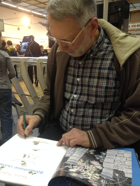 У "Речи" застаю М. Бычкова - к моей великой радости, он еще до начала автографсессии подписывает мне книги - в этот раз все три книги Ш. Перро изд. "Акварель", так как практически все книги "Речи" с его иллюстрациями у меня уже есть.