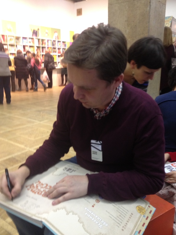 Тут же вижу А. Голубева - он подписывает кому-то "Карты России". Сама подписать, увы, не успеваю - он быстро исчезает.![]()