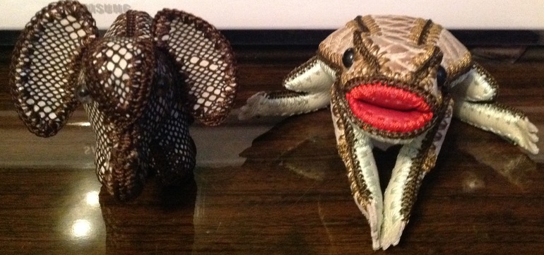 Никак не могу уйти с выставки, не приобретя какой-нибудь авторской вещицы - где ж это видано? Вдруг в последний день на стенде "Махаона" вижу вот этих замечательных зверушек, сшитых из кожи - и откуда взялись такие красавцы?