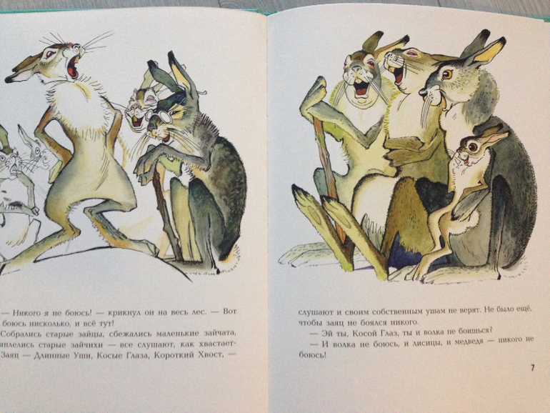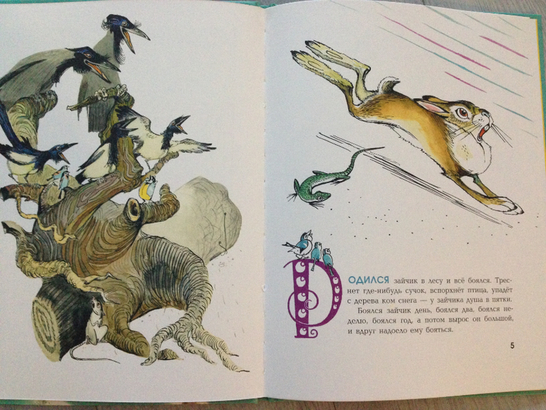 1) "Сказка про храброго зайца -длинные уши, косые глаза, короткий хвост" Мамин-Сибиряк. Читал сын книгу с папой 1 раз, больше не просил. Но книга замечательная с рисунками