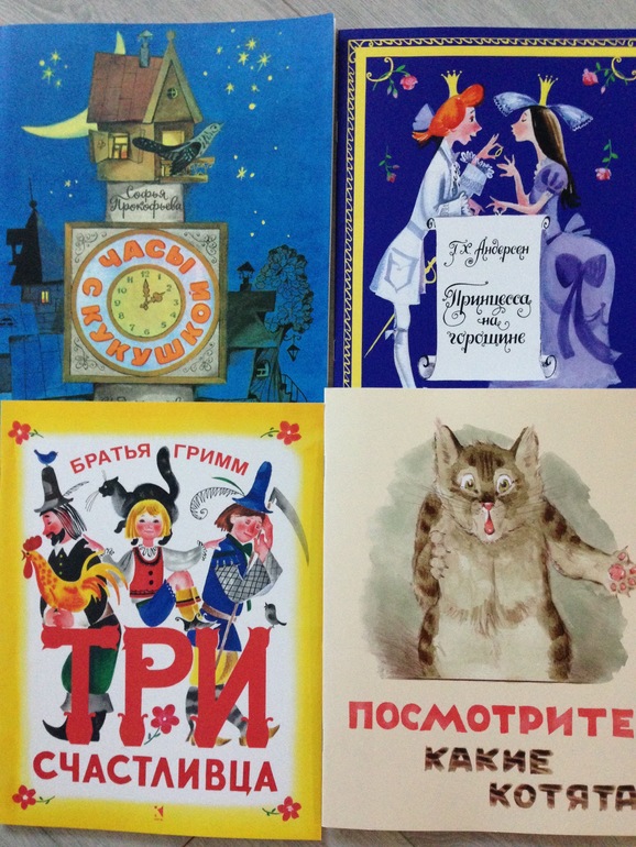"Часы с кукушкой" Софьи Прокофьевой читали 1 раз, сын равнодушно к ней отнесся, как и к "Принцессе на горошине". "Три счастливца" братьев Гримм читали несколько раз, сын сам приносил, хотя, на мой взгляд, сказка... странная, особенно концовка про кота...) "Посмотрите какие котята" автор Владимир Матвеев, покупала для младшего сына, но Арсюше очень понравилась, прочитали три раза подряд со словами: "Мама, давай еще почитаем. Я не запомнил какие котята бывают"))