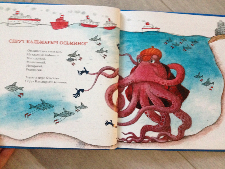 4) "Спрут Кальмарыч Осьминог" стихи Григория Кружкова. Хорошие иллюстрации, стихи, прочитали за раз, но далее была сыном позабыта из-за Лео) думаю, вернемся к ней чуть позже.