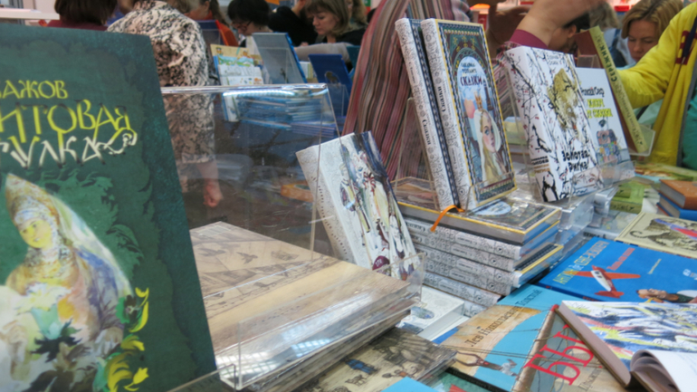Почти все время (часов этак 6 или 7) мы провели на третьем этаже, где же нам еще быть, как не в зале с детскими книгами?) А когда наконец спустились на второй, то просто потерялись среди лабиринтов из стендов и прилавков. Даже знание номера нужного стенда не спасло от бесконечного кружения, одну только Науку и Жизнь искали минут двадцать. Нам не хватило как минимум еще одного дня, чтобы все рассмотреть (а лучше - нескольких).