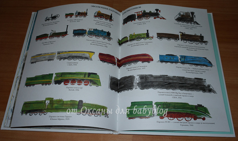 В самом конце книги на справочных страницах можно проследить эволюцию паровых локомотивов.