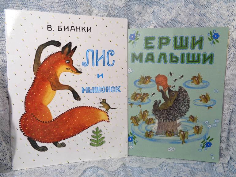В. Бианки "Лис и мышонок" с илл. Васнецова. Любимая книга моего детства. Уютная такая. Помню, как разглядывала норку мышонка, горшок под кроваткой, кладовочку. Сережа оценил не сразу, но потом стал приносить все чаще и смотреть дольше.