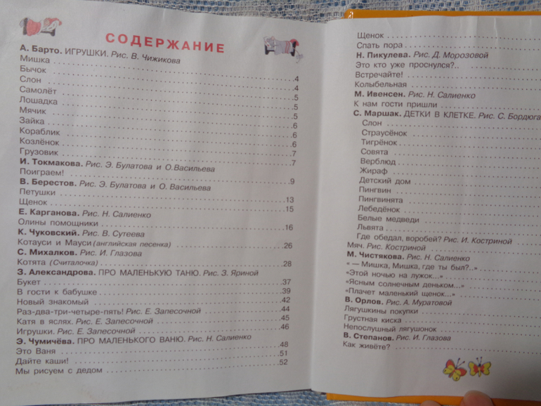 "100 стихов малышам" изд. АСТ. Куплена случайно в местом магазине. Сначала мне не нравилась, потом сменила гнев на милость. Стихи самые известные и обязательные. Иллюстрации преимущественно классические "из детства". Читаем не все, слушает обычно Барто (кстати, иллюстрации Конашевича Сереже больше нравятся, чем Чижикова, но может быть, просто здесь мельче и разглядывать нечего), Токмакову, Берестова и Маршака "Детки в клетке". Еще может послушать "Щенка" Чумичевой и "Как живете" Степанова, остальное перелистывает и читать не дает.