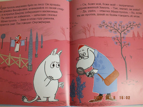 Неожиданно понравилась Семену книга про Муми-троллей. Адапт. Я покупала ее сто лет назад, и она лежала. Точно год лежала. А тут понравилась.