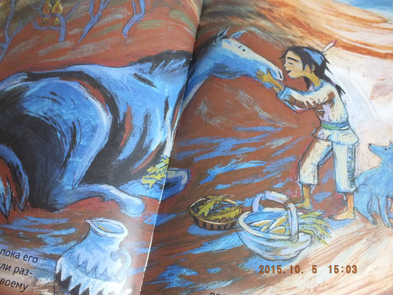 Что сказать про эту книгу? Это чудо. Я влюбилась в нее еще тогда, год назад. Во-первых, она небольшая по тексту. Во-вторых, это очень складная история про индейцев для малышей, потому что я подобных то и не встречала.