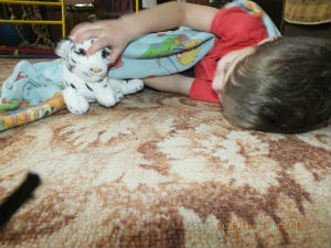 У Семы интересное восприятие книг, память у него моторная, поэтому вечно после книжки бежит реализовывать (запоминать) сюжет через игру. Он не будет сидеть и рассуждать, придумывать, сочинять и т.д. Он пойдет и сделает.