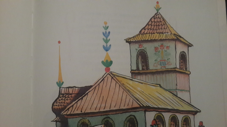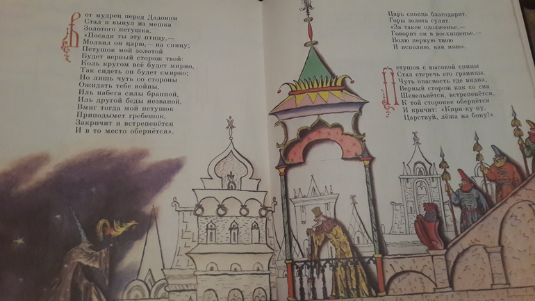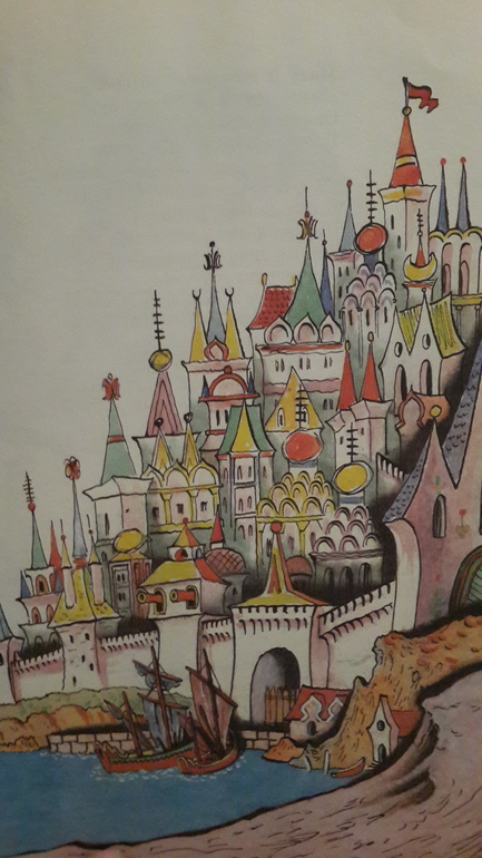 Но я их нашла. И не абы какие. А настоящие сказочные крыши городов времен сказок Пушкина в книге доставшейся еще из мужниного детства. Художник Конашевич Владимир Михайлович. Тут они не просто так - тут они настоящие герои иллюстраций.