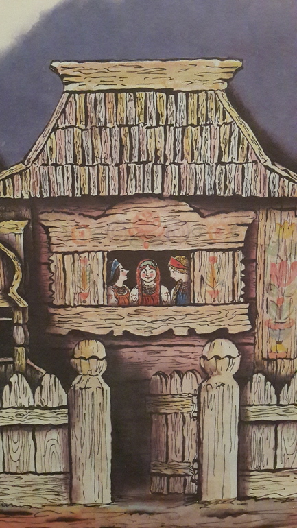 Признаюсь честно, меня эти иллюстрации не кидают в трепет, не заставляют их рассматривать часами. Но тем не менее они очень атмосферные и ненавязчиво увлекают тебя туда "где чудеса и леший бродит". Ага, и петушок сейчас закричит