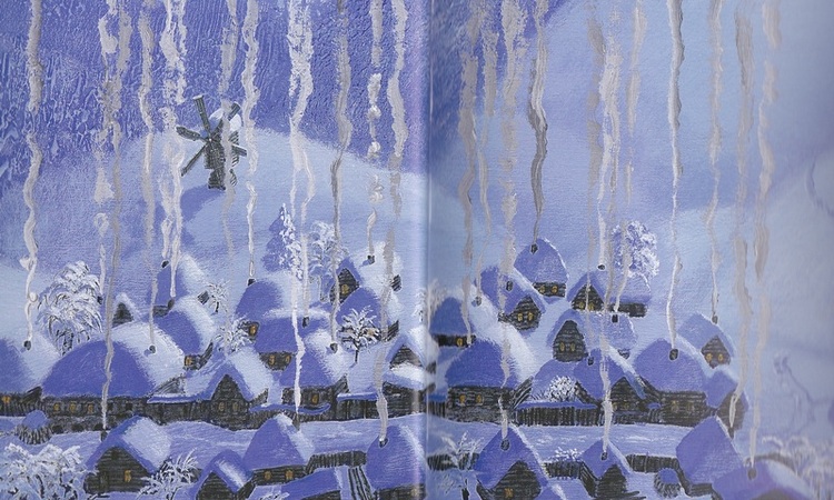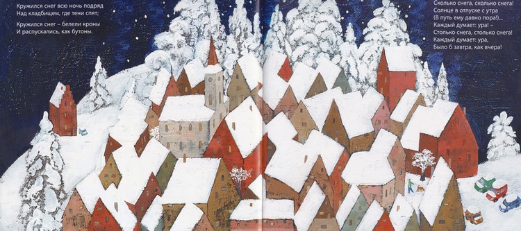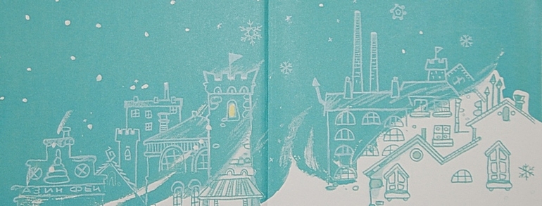 А в них - снег, настоящий, белый и пушистый. Ведь мы же празднуем наступление зимы! Поэтому снег из подарков рассыпается по крышам и получается настоящая зимняя сказка.