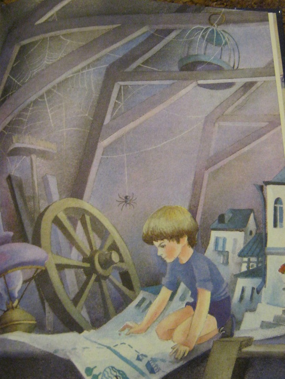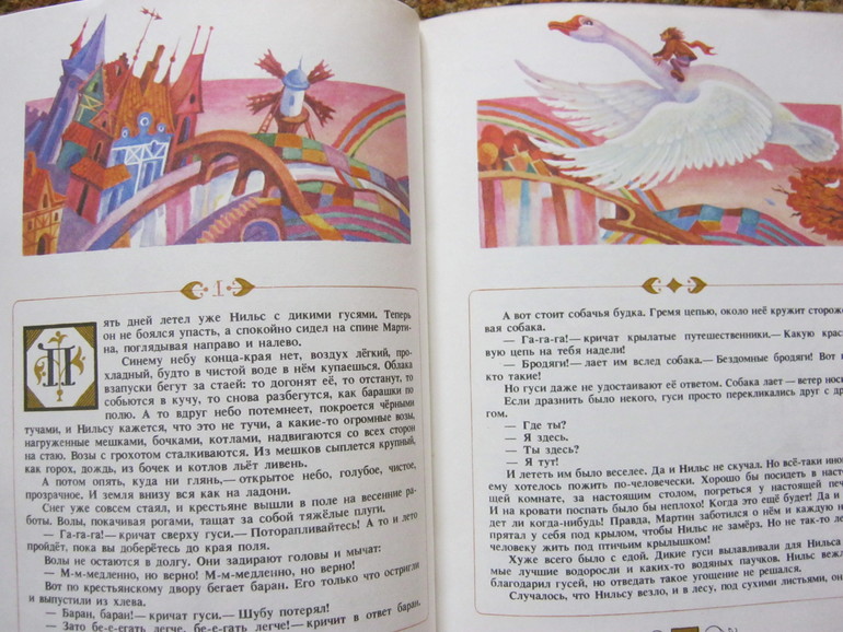 Вот Нильс, пролетающий над... ээээ... каким-то шведским городом (художник С.Крестовский)
