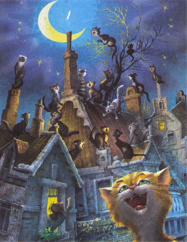А вот кошачьи и другие крыши от художницы Светланы Емельяновой из очень любимого детьми и мной сборника стихов М.Яснова Кисуня и Крысуня
