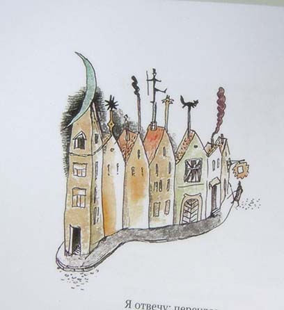 3. А сколько восхитительных домиков с необычными крышами нарисовал Евгений Антоненков для книги "Крыша ехала домой" Юнна Мориц. Тут и домики гномиков