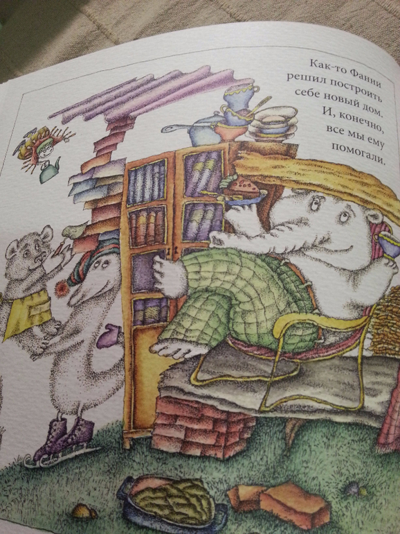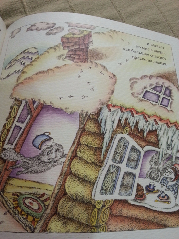 А Бабушка Момми (про которую ребенок еще, глядя на обложку, сказал, "смотъи, какая бабуска" - знала видимо Шульгина путь к сердцу некоторых чад) похоже любит, когда дома тепло, вон сколько печей затопила, хотя с героя этой книги вполне станется иметь дома печь с тремя трубами