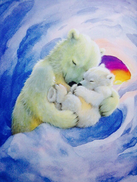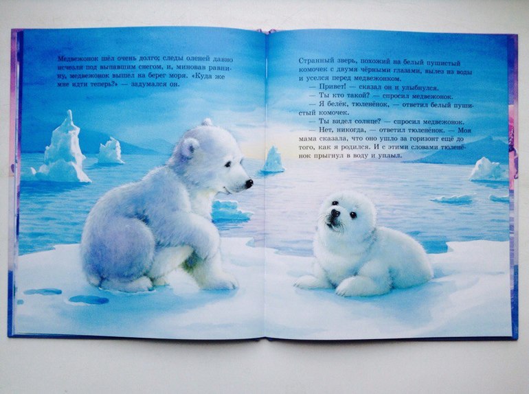 Удивительно красивая книга! Тоже читали ее в прошлом году. Захотелось еще раз вернуться к ней, рассмотреть каждую страничку и вспомнить историю о медвежонке. Сама история не очень интересна, пошел медвежонок солнышко искать, встретил одного, встретил другого, а потом вернулся к маме... А вот оформление изумительное, выше всяческих похвал! Мы ее любим больше рассматривать, чем читать) Книга для создания зимнего настроения.