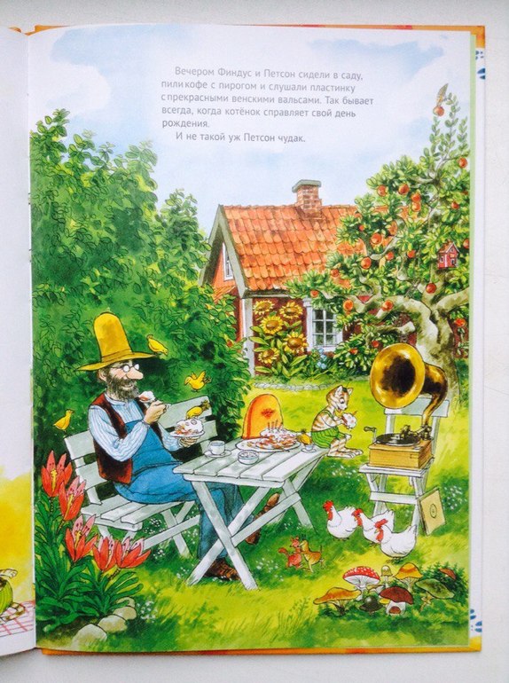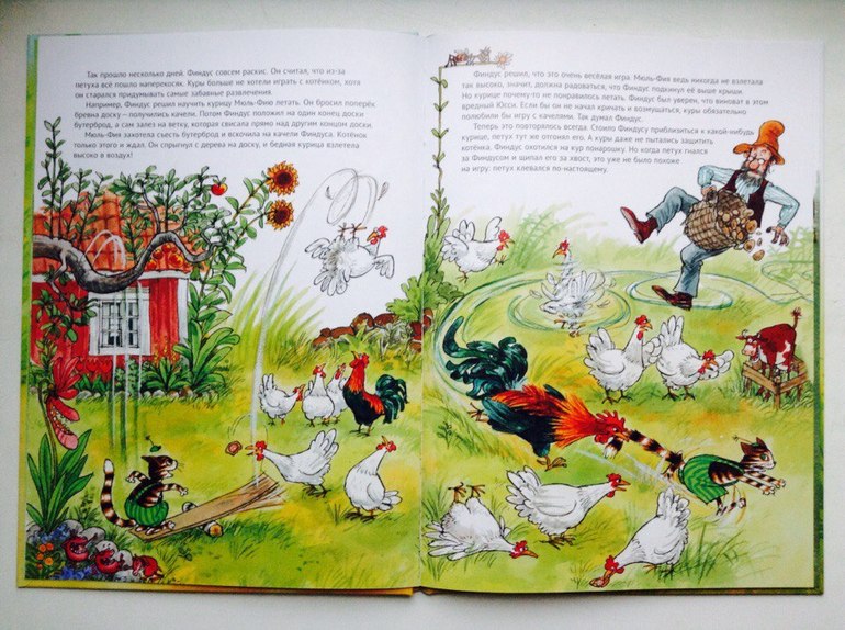 Продолжаю покупать серию книг о Петсоне и его котенке Финдусе. Все эти истории мы уже по много раз прослушали, в виде аудиосказок. Обычно, берем с собой в дорогу флешку с большим количеством аудиосказок и Петсон с Финдусом у нас в фаворитах. Прочитали пару раз, посмотрели картинки, все понравилось. Качество издания хорошее.