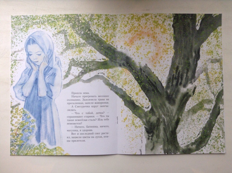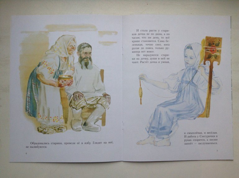 Сейчас много разных снегурочек, но эта.... самая настоящая! Я вот ее в детстве именно такой представляла. Она такая нежная ,хрупкая, трогательная, немного печальная эта девочка из снега. На рисунках можно увидеть даже следы карандаша, наброски художника. Акварельные рисунки Алексея Пахомова, просто чудо как хороши! Текст читается легко, ребенку все понятно. Хорошая спокойная сказка.