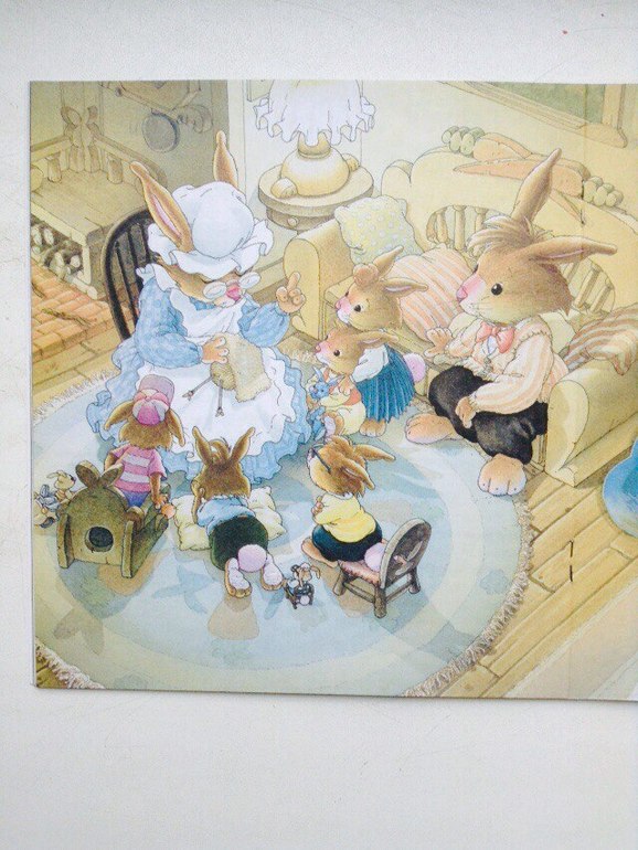 В ноябре я решила докупить книжки про кроликов. В первый раз я покупала книги в твердой обложке, в каждой по три истории. Мнения на счет этой серии у нас в семье разошлись. Старшей дочке совершенно не понравился текст. Читается он и правда не очень. Сухой какой-то, особенно когда читаешь в первый раз. Я, прочитав с дочкой по несколько раз каждую из четырех книг привыкла и уже не обращала внимания. Сами истории интересны, иллюстрации само собой на 5 с плюсом! Можно долго разглядывать каждый разворот находя все новые и интересные детали. Кролики очаровашки)