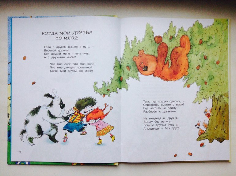 Вот такая книжка должна быть у каждого ребенка! И покупать ее можно даже самым маленьким)) Сколько тут добрых и чудесных песенок. Читая ее невозможно избавиться от желания пропеть знакомую с детства песню.У нас это продолжалось целый вечер. Дочка с удовольствием подпевала и пританцовывала. Настроение поднялось у всей семьи. Это сближает всю семью и делает нас добрее и позитивнее))