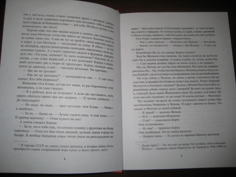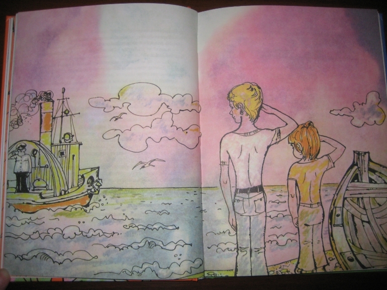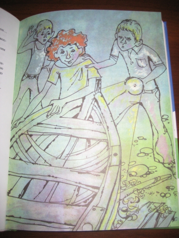 Мне и сюжет очень понравился - настоящие мальчишечьи приключения (ну вы много книг знаете, где парусную шлюпку из подручного материала строят?), и то, как написана книга: живо, образно, с юмором. Не могу удержаться, чтобы не привести кусочек: