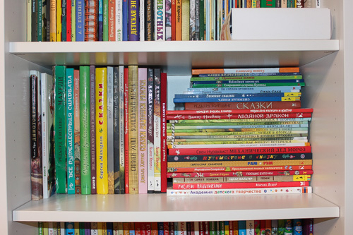 С верхних двух редко книги достаются, ждут своего часа.