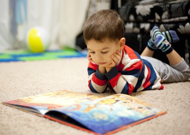 Никитос за чтением любимых "Маленьких человечков"