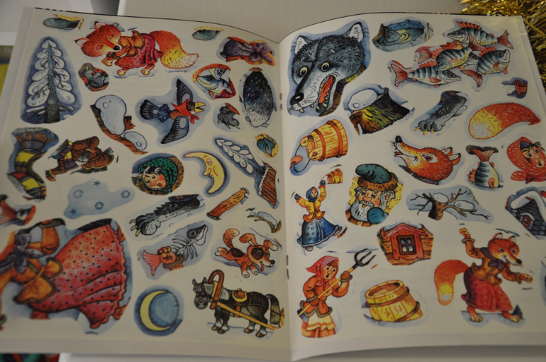 Вот эта нам пришлась на наши 2.5 года, и доступное изложение сказки, и наклейки.