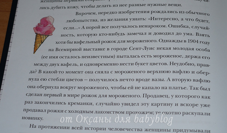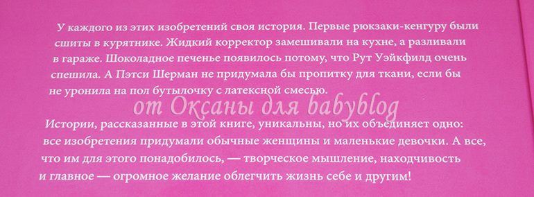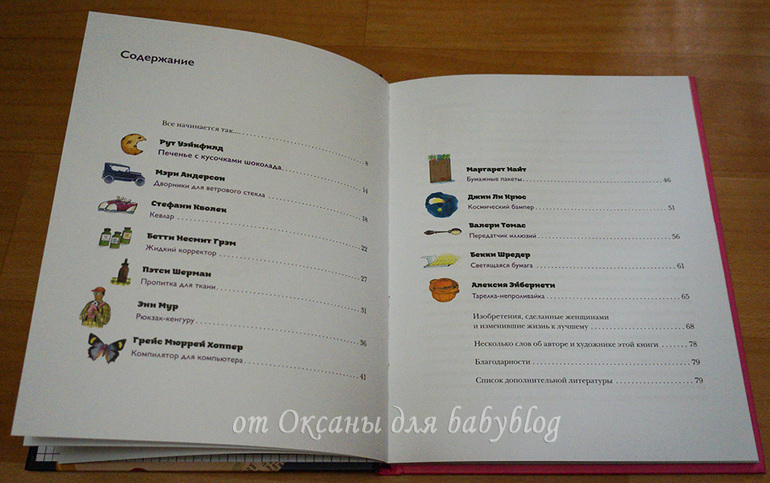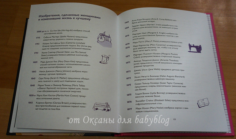 В конце книги есть целый список (в хронологическом порядке) изобретений, сделанных женщинами.