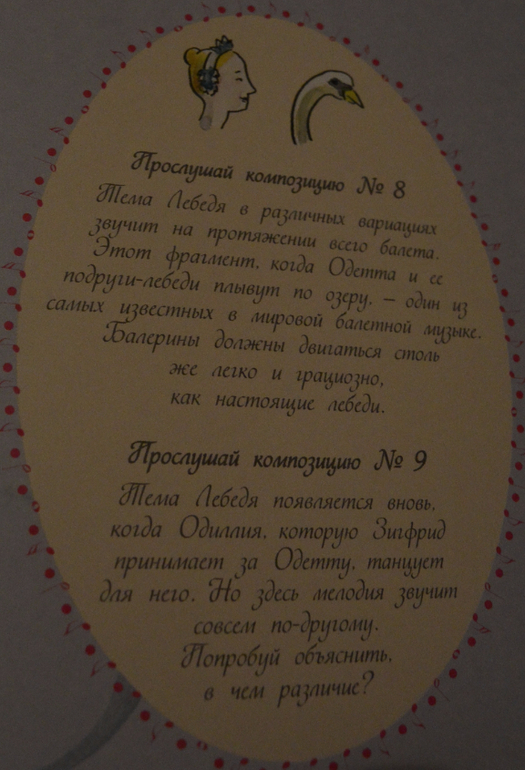 Формат книги увеличенный, приближен к квадрату. Удобно держать. На каждой страничке картинки или фото. Достаточно плотные страницы. В начале книги дается кратка информация о истории балета и его основах. Затем каждый разворот посвящен определенному балету. Параллельно чтению можно прослушать музыкальный фрагмент. Он находится на диске, который прилагается к книге, что позволяет глубже почувствовать произведение и окунуться в определенную атмосферу.