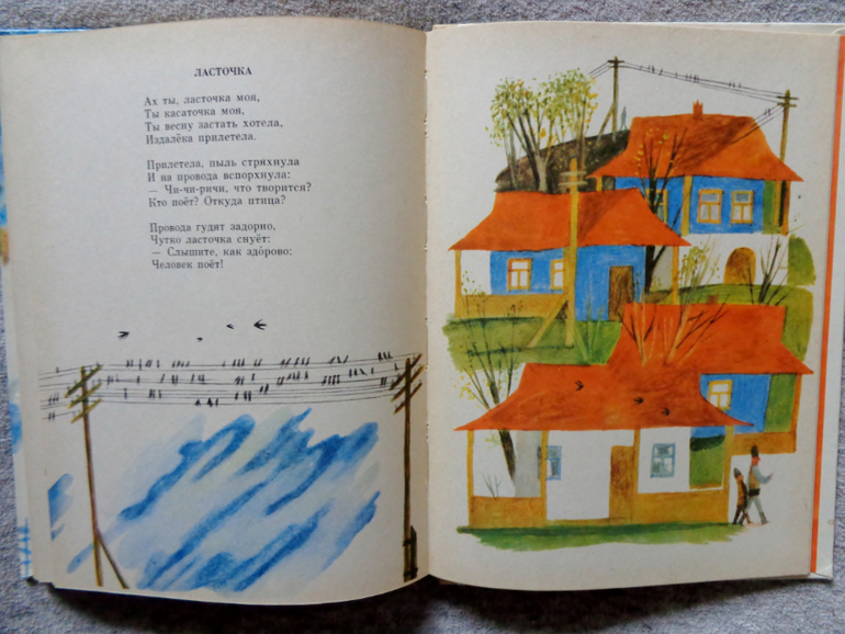 А ещё два замечательных наших человека перевели эту книжку на русский - Яков Аким и Валентин Берестов. А рисунки нарисовал Евгения Монин. За их кажущейся простотой - мир чудес, улыбок, доброты. На рисунках слышно, как поёт соловей, как ёжик стучит в барабан, слышно тихую колыбельную: - Звезда, выручай...