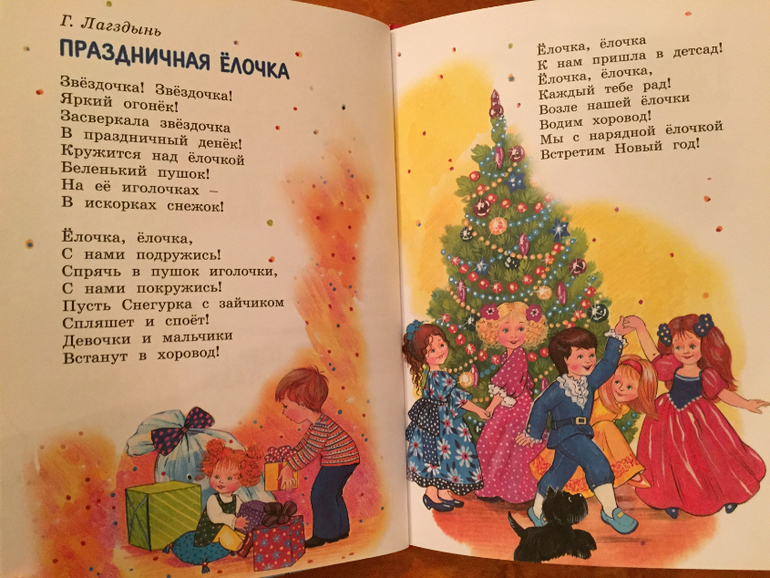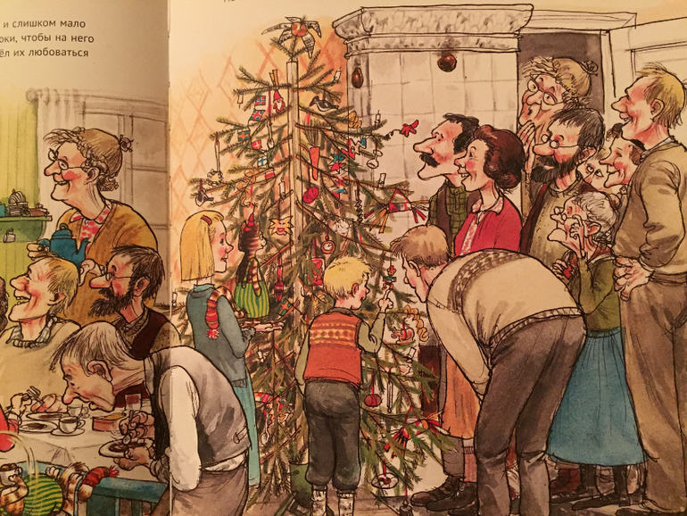 В прошлом году Олеся больше слушала текст, мало обращая внимание на детали, а вот сейчас, наконец, стала рассматривать все подробно, а особенно - чем же наряжена елочка.