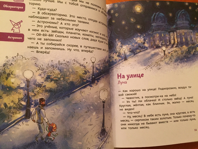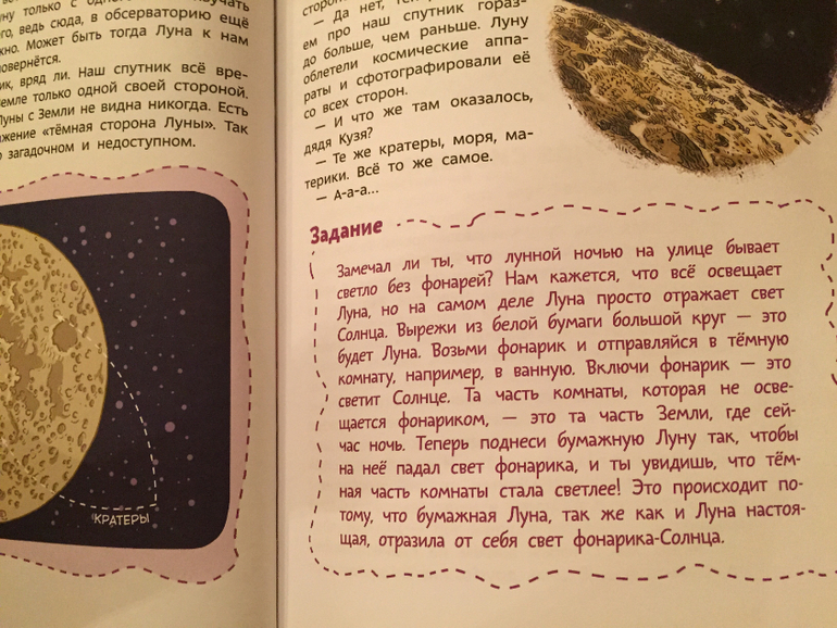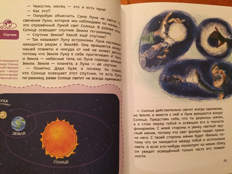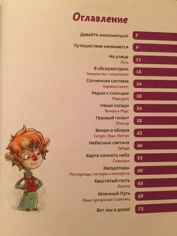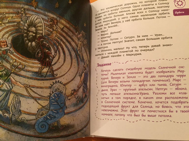 Я поначалу разочаровалась в покупке, но только потому, что моя дочка и так уже много знает о Солнечной системе. Мне показалось, что мы с этой книгой опоздали. И все-таки, я оказалась не права. Олеся просит книгу перечитывать, а мы мало что перечитываем сейчас. Очень ей понравилась информация о том, какие планеты именем каких богов названы. Про метеоры, метеороиды и метеориты без бутылки не разберешься тоже интересно, я сама их раньше по-другому классифицировала.
