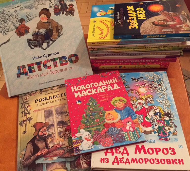 У нас три книжки, мы их и в хвост и в гриву :) Но больше всего сейчас читаем и играем в ту, которая "в тему" - если бы ее не было, обязательно купила бы к Новому году, очень настроенческая.