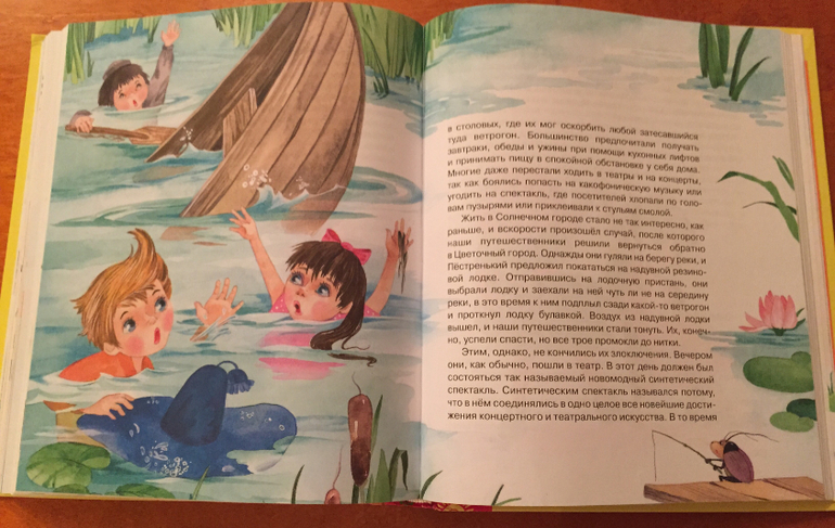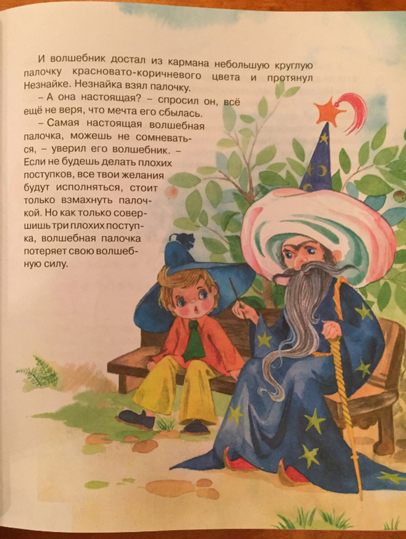 Она куда увесистее и труднее для понимания. Хотя, общая канва там несложная, и в целом понятная и в таком возрасте: волшебная палочка, которая в бестолковых руках может принести много вреда себе и окружающим, путешествие в другой город, где много всяких чудес и диковинок, взаимоотношения и характеры героев.