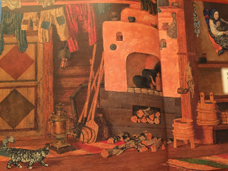 Я уже и на горках столько не каталась, и такую печку не застала :) А моя дочка и вовсе, глядя на эти картины деревенской жизни, на ухваты, дрова, чугунки и русскую печь поясняет: