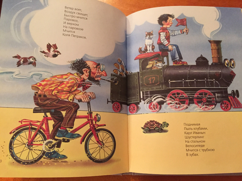 И вот эта иллюстрация заставляет меня каждый раз останавливаться на ней подольше. И паровоз хорош, и колоритный Карл Иваныч тоже!