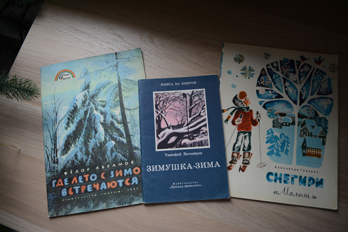 Тонкие книжки друзья, которые в зимней подборке в коробке на столе. Тимофей Белозеров с Зимушкой-зимой. Это классика. Зима не в городе, зима за которой уже нужно ехать...