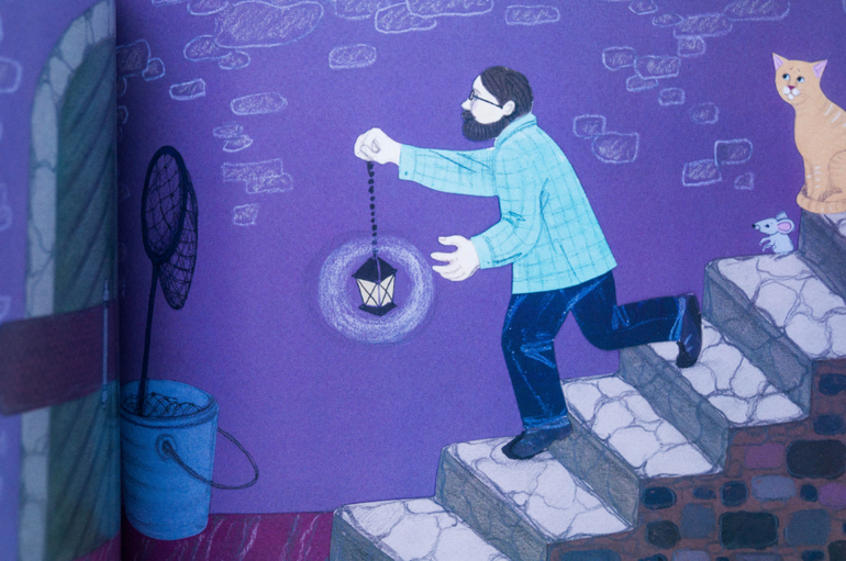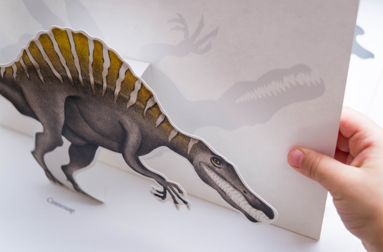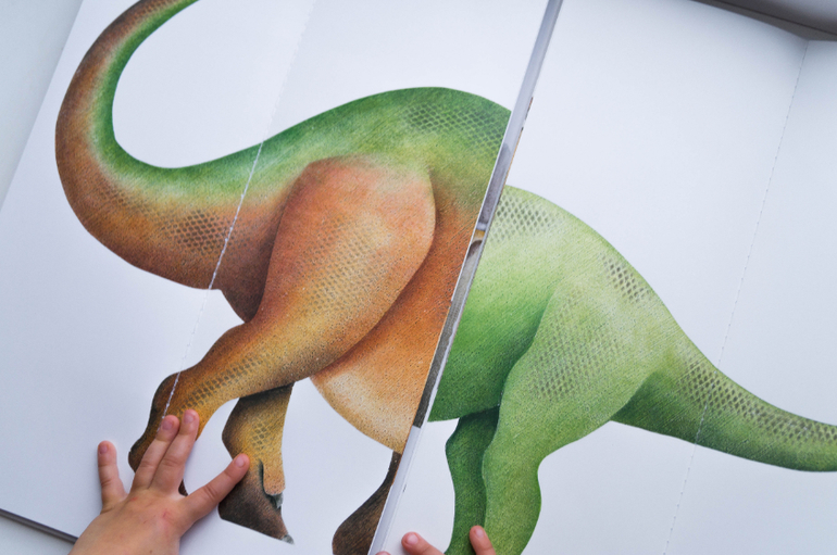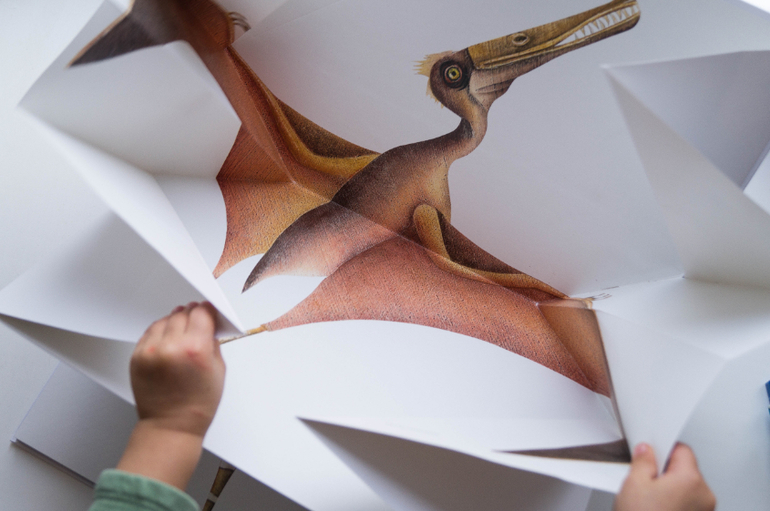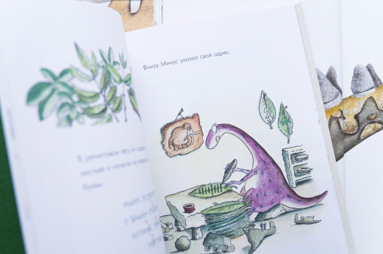 А основная изюмина - это птеродактиль. Я двигаю разворотом туда-сюда, имитируя полёт, и это реально эпичное зрелище, учитывая внушительный формат книги. Алиска тоже пытается размахивать древней птицей, но я при этом нависаю, конечно, велик риск вандализма.