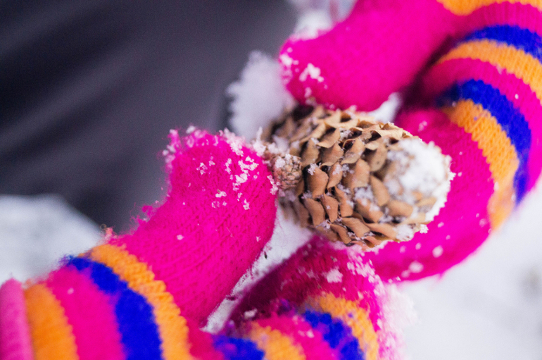 А в октябре у нас уже выпал снег. И запомнился нам этот месяц походом в дремучий лес. Единение осени и зимы, желто-белое время и мёрзлые рукавички.