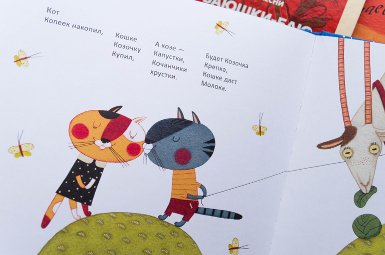 Иллюстрации в книге спорные. От некоторых меня прям коробит. Самую брррную забыла сфотать, из стиха Про Лену. Маман там просто мой ночной кошмар. Зато вот котики мне нравятся очень, милотенюшка. И у козы глаза по ГОСТу)