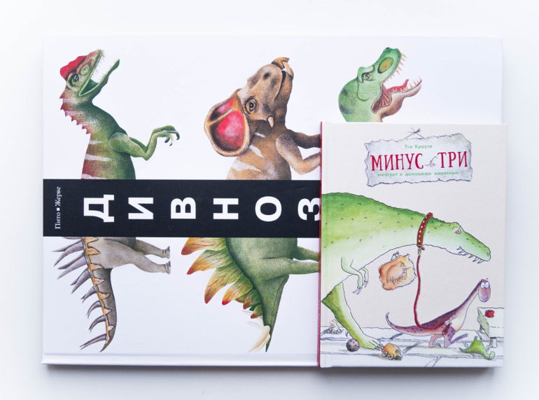 И я поняла, что нам нужны книги про динозавров. И купила две - крошечную и громадную :)