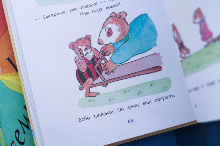 - Нет. Я - мама. Ты - ребятишка. Я буду тебе читать. Смотри, Бобо заплакал, он хочет играть на детской площадке. Я тоже хочу, мама, пойдём гулять?