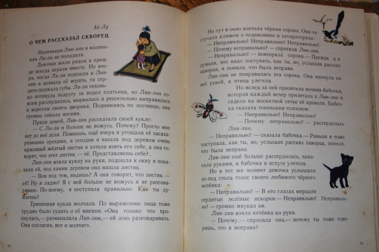 потрепанная книженция, но я в нее влюбилась и выпустить из рук уже не смогла. Тут стихи, сказки, загадки китайских писателей в илл. Молоканова, Митурича и Кочергина