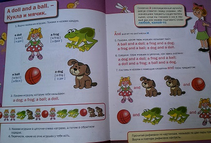 Купила на пробу, без отзывов и попала в точку. Сейчас просто учим отдельные слова, но книга 4+ и в ней много заданий на усложнение, творческих. Так что по окончании изучения отдельных слов, еще не раз к ней вернемся в будущем. Для тех