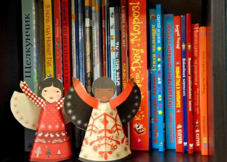 Есть в нашей семье еще одна замечательная новогодняя традиция. Каждую зиму мы достаем книги про новый год и рождество или просто на зимнюю тематику и читаем их, уютно устроившись на диване под пледом, а с завершением зимы убираем их. Эта традиция началась в один прекрасный декабрь, когда я сделала детям адвент из новогодних книг - каждый день декабря мы читали новую новогоднюю книгу и тем самым приближали новый год, создавая себе прекрасное новогодние настроение. Теперь каждый год в предверии праздника я делаю вот такую новогоднюю полочку и непременно добавляю несколько новых книг, соответствующих нашему возрасту.
