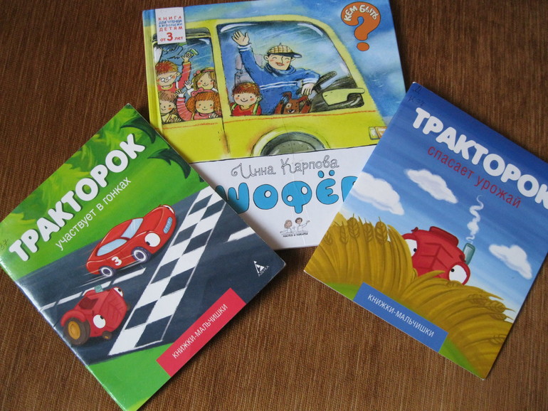 Снова всё библиотечное. Книжки-мальчишки я бы с удовольствием купила, но всё куплено до меня( Решила брать по парочке каждый месяц, начала с историй про тракторок, ибо тракторы рулят (слово "тар-тар" (он же трактор) у нас было в двадцатке первых слов ребенка).