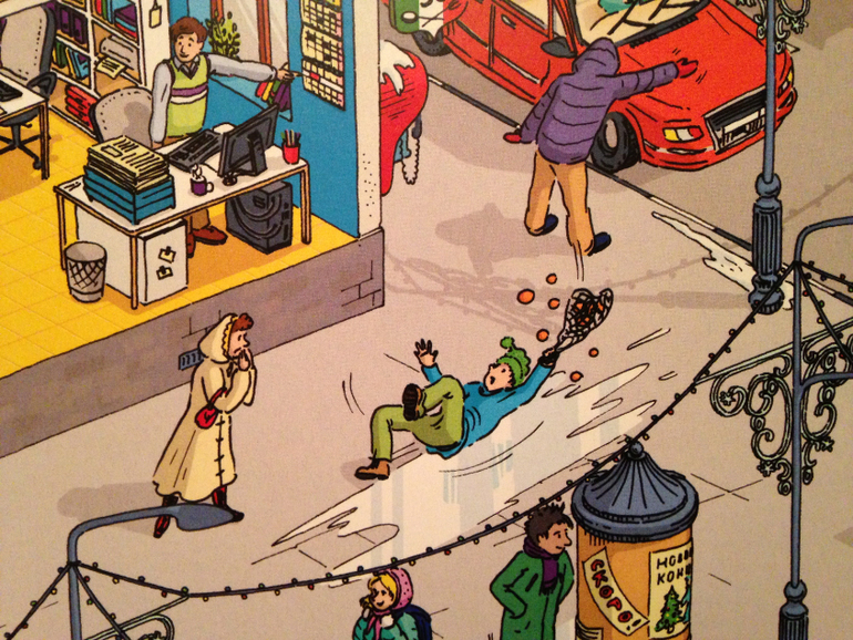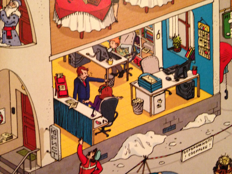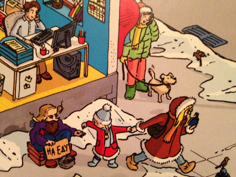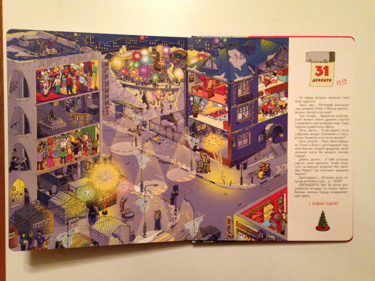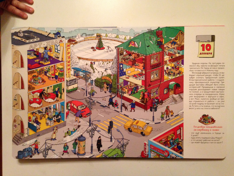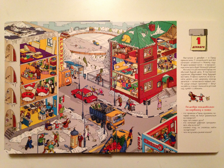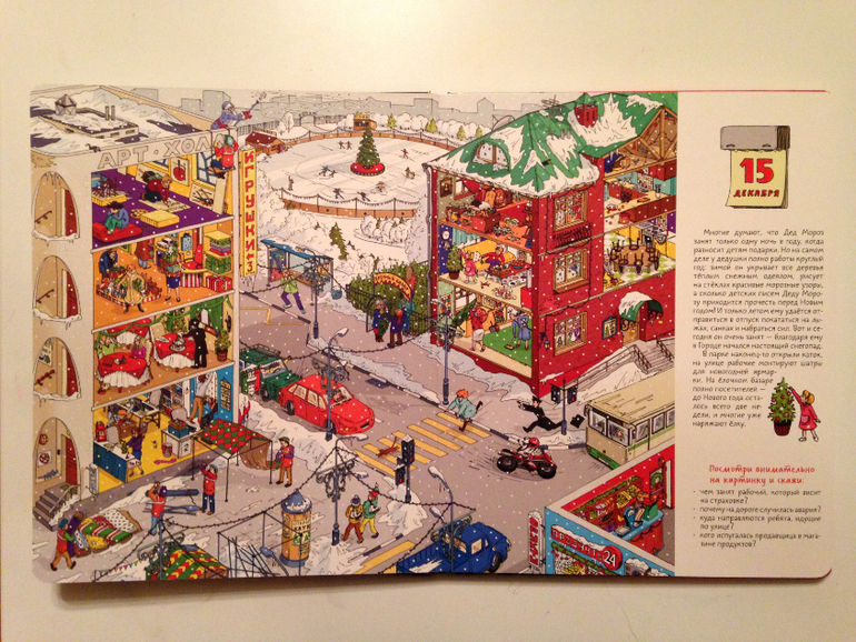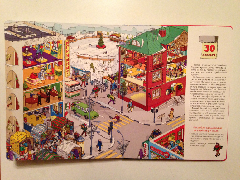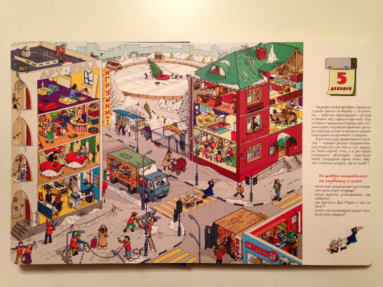 После страницы с 1 декабря сразу наступает 5ое. И хорошо, что так! Не могу представить себе виммельбух, чтоб вот прям на каждый день. Это ж сдуться на середине уже можно...