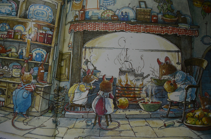 Книги очень душевные и атмосферные, по иллюстрациям больше нравятся, чем Ежевичная поляна. А что за бесподобные фигурки мышек у Вас? Я просто балдею от этих иллюстраций в духе кролика Питера, с удовольствием бы купила и фигурки для дочки.